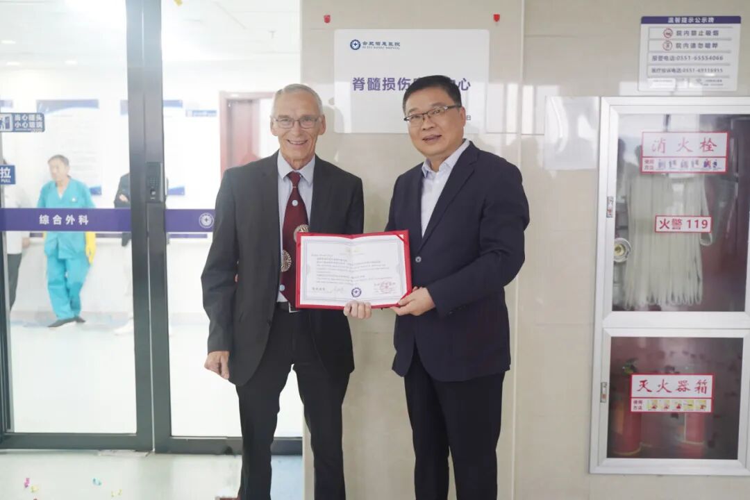 隨后,在全體與會人員的見證下,佰澤醫療集團副總裁、合肥佰惠醫院院長盧繼忠與Fin Biering-S?rensen教授共同為脊髓損傷康復中心揭牌。儀式后,盧院長代表醫院向Fin Biering-S?rensen教授頒發聘任證書,正式聘請其擔任醫院外籍專家。此次聘任將進一步加強醫院在脊髓損傷臨床診療、學術科研與國際合作領域的綜合實力。